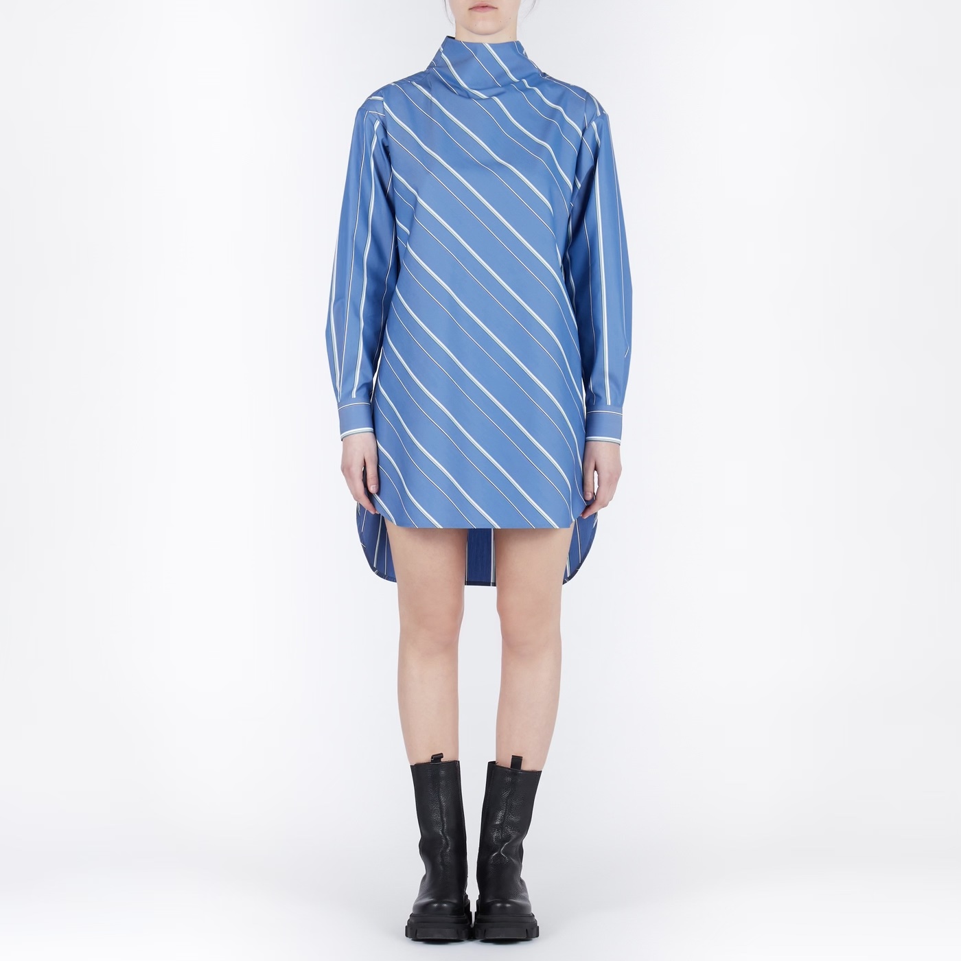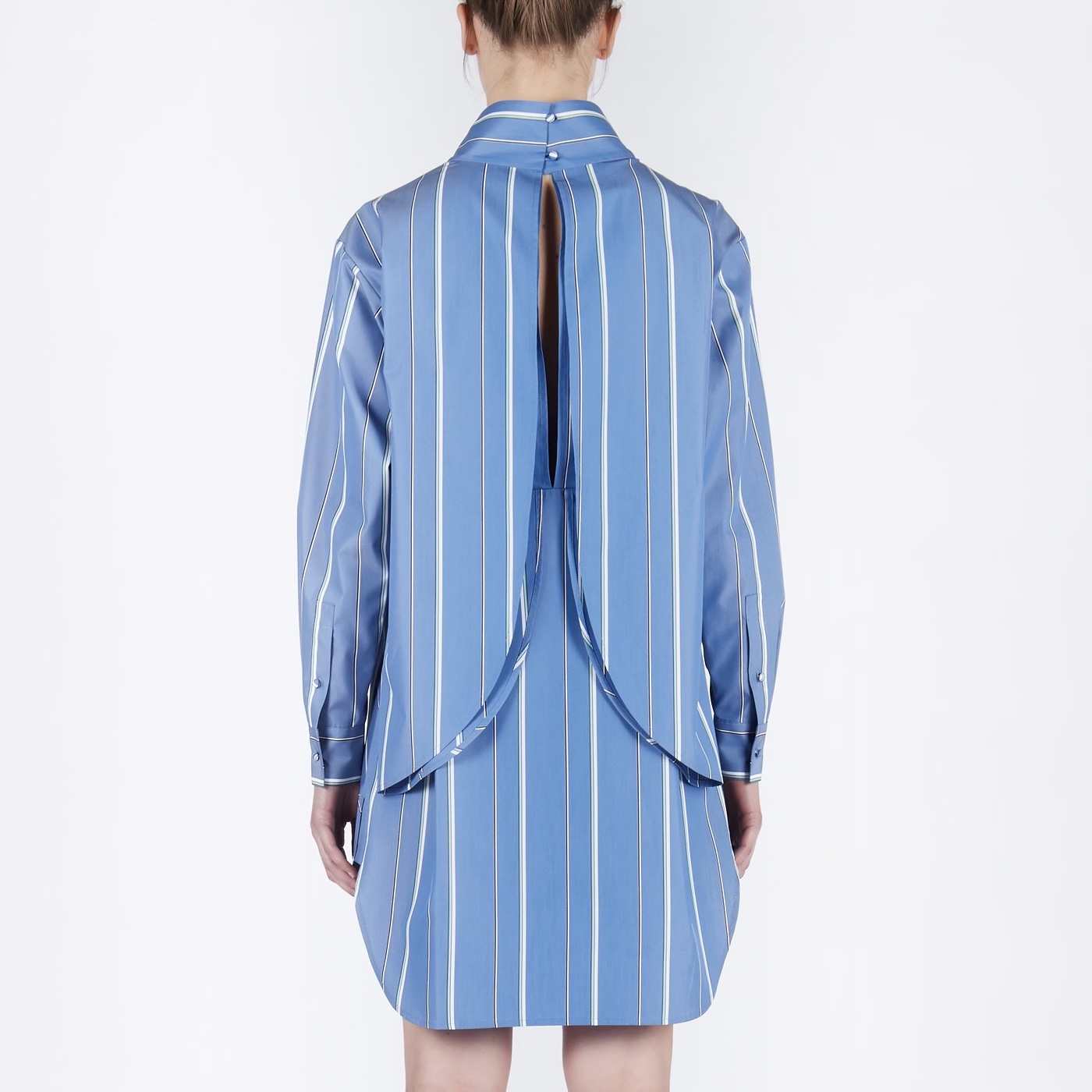 Back Open Stripe Shirts Dress